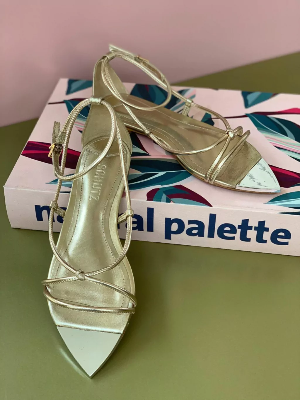 A sandália rasteira cor caramelo da marca Schutz é a escolha ideal para quem busca unir conforto e sofisticação em um único calçado. Com suas tiras finas e o delicado bico em formato de folha, este modelo se destaca pela elegância e versatilidade.